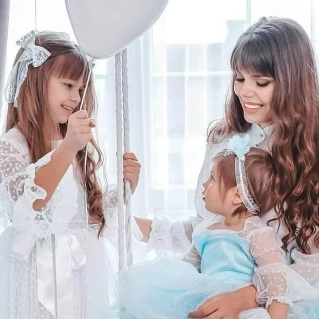 Сім’я родом з Нової Каховки, що на Херсонщині. Щасливі батьки виховували двоє донечок – Кіру та Катю (3 роки і 10 років). Вони завжди захоплювались маленьким успіхам своїх дітей та мріяли про сімейний відпочинок і затишне житло. Чоловік з 2014 року перебував на військовій службі в Донецьку, його позивний – “Незламний кіборг”. З початку повномасштабної війни місто окупували російські війська, які вбили батька двох дівчаток під час обшуків його власного будинку. Оскільки перебувати в окупованому місті було вкрай небезпечно, жінка з дітьми виїхала за кордон, проїжджаючи через кілька російських блокпостів та анексований Крим. Зараз родина проживає в Німеччині: старша донька ходить до школи та вивчає мову, молодша – готується до садочку. Дівчатка та мама з нетерпінням чекають, коли здійсниться їхня найзаповітніша мрія – повернення додому в рідну та вільну Україну.