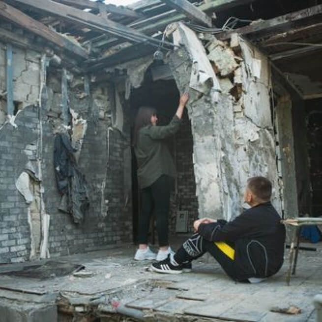 Makar and Alina continue to live in Bucha in a small apartment nearby, their family and their home completely destroyed by the invading soldiers.