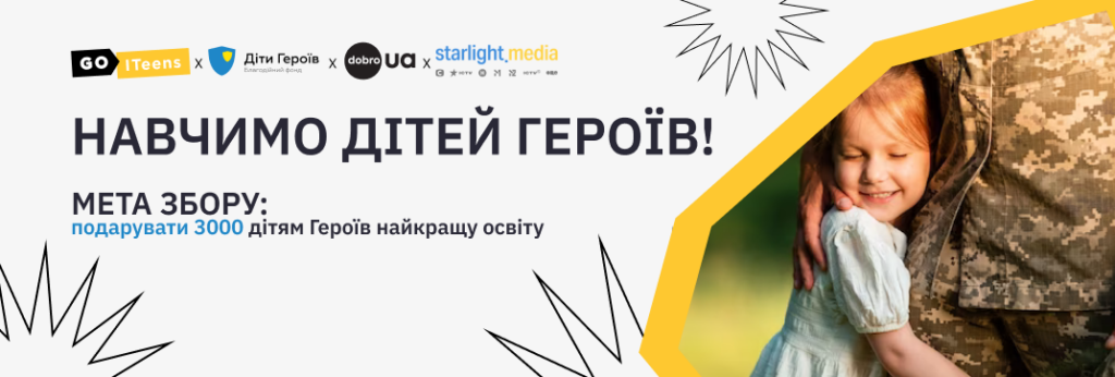 Аби історія Ярослава не була винятком, благодійний фонд «Діти Героїв», онлайн ІТ-академія GoITeens разом з благодійною платформою dobro.ua та інформаційним партнером медіагрупою Starlight Media обʼєдналися заради спільної мети – забезпечити 3000 дітей військових якісною ІТ-освітою.