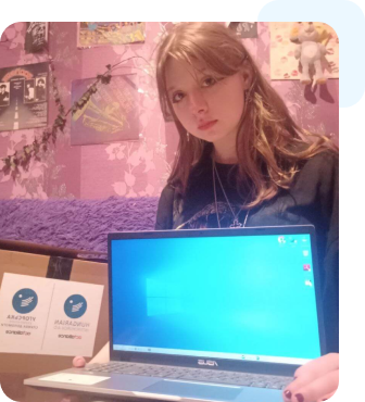 Полив’яна Анна завжди була прихильницею технологій. У дівчинки зламався ноутбук, але Аня все одно за першої можливості хотіла доєднатись до онлайн-навчань та курсів від нашого фонду. Тож ми подарували дівчинці ноутбук, аби підтримати її бажання розвиватися